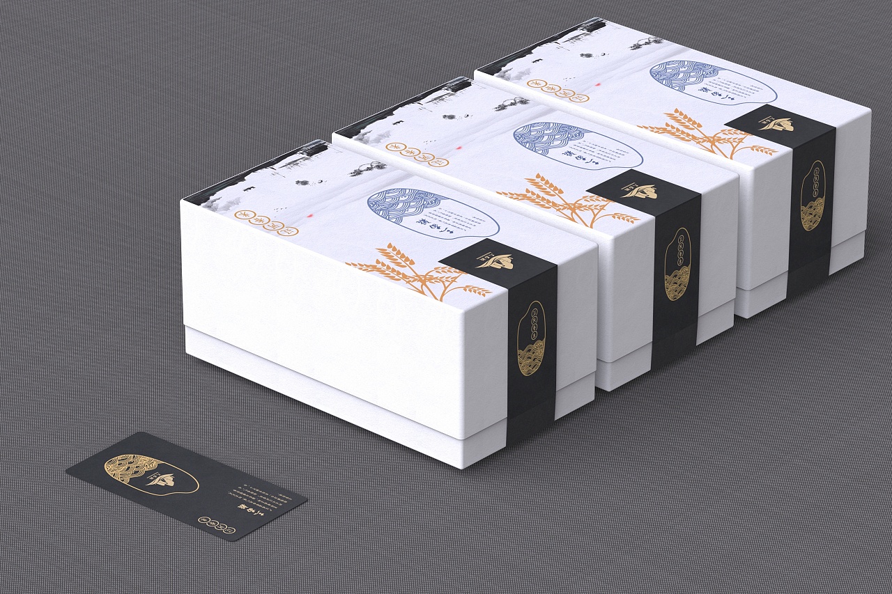 外觀包裝的底部,我們將米粒進行了色彩處理,象征著一條源遠流長的河,這是品牌對自然的致敬。
