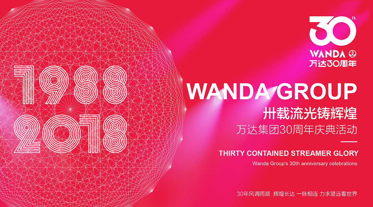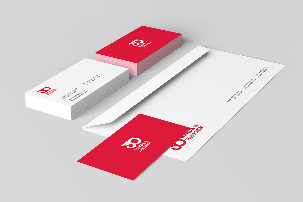 本次主kv顏色定為中國紅,寓意非凡、成就、慶祝;在數字30的字體設計上,我們和WANDA英文的形狀進行了完美統一,體現出氣勢感;同時也設計了名片、信封、雨傘等周邊,體現出分享和喜悅之情;“萬達集團30年風調雨順,輝煌長達,一脈相連,力求望遠世界?!?/span>
