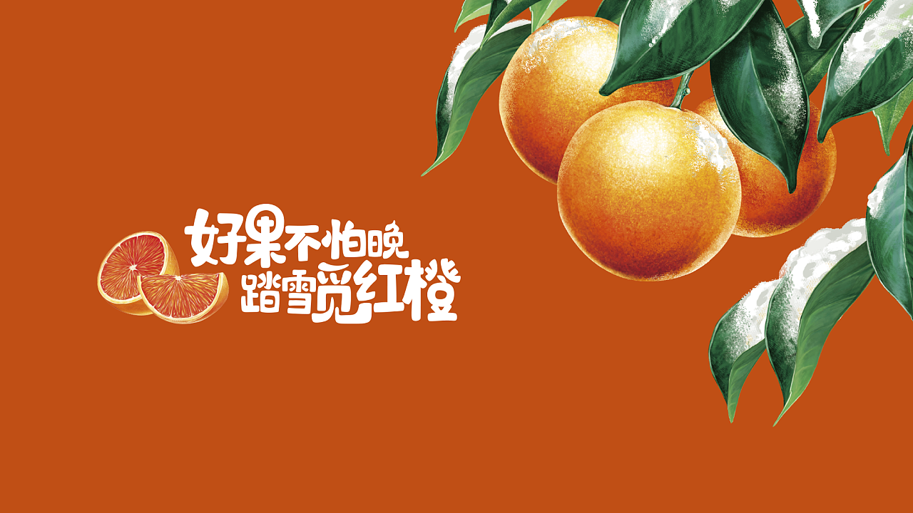 好果不怕晚,雪里覓紅橙。我們確立了這句話作為品牌話語,進行了品牌提煉。