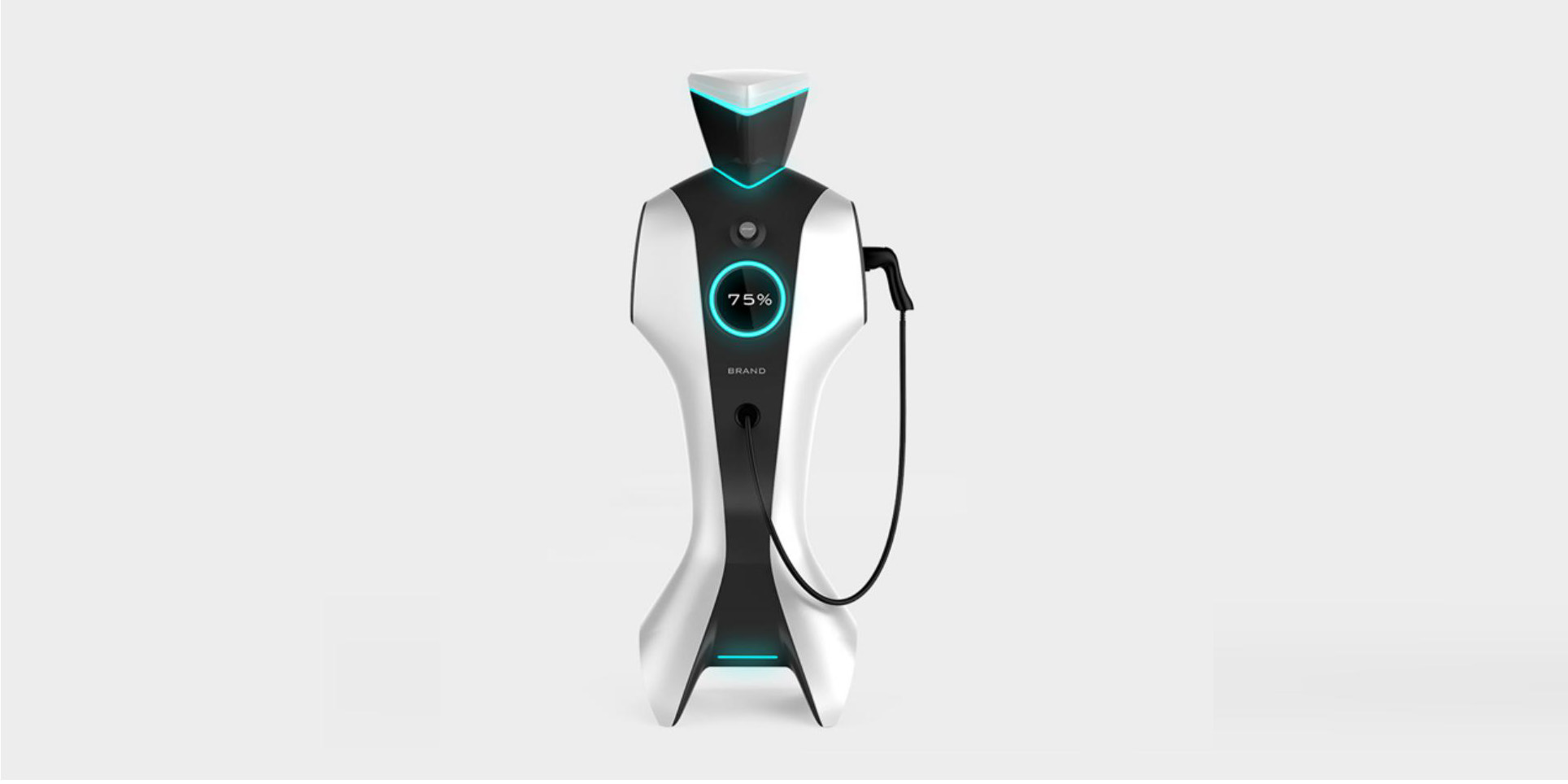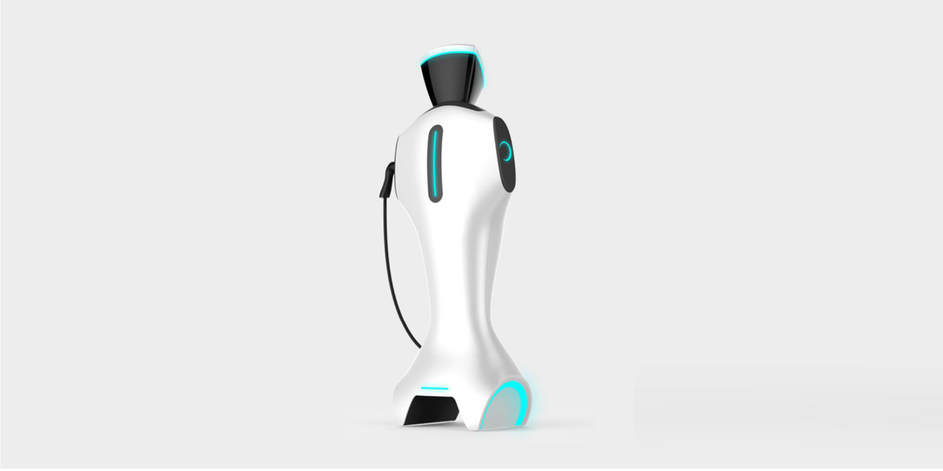 特斯拉充電機器人整體造型酷炫充滿科技感,以簡潔明了的灰色為主,配以黑色為輔,形成鮮明的相對比,并通過藍色的加以點綴,凸顯產品的科技感,整體產品的線條又凸顯了產品的牢固性,充分表達了產品所應具備的特點。